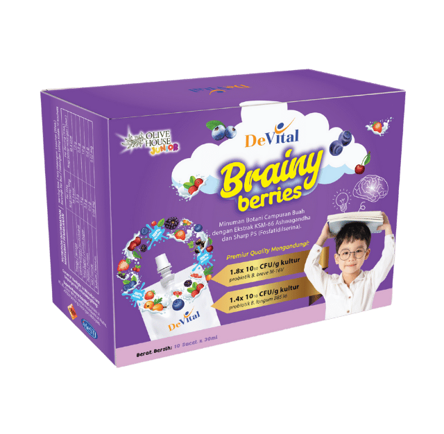 Formulasi Brainy Berries Kids mengandungi campuran minuman botani, probiotik, enzim dan multivitamin yang dirumus sebagai sokongan nutrisi harian, bukannya ubat. Ikut sahaja dos yang dicadangkan di label dan rujuk profesional kesihatan jika ragu-ragu.